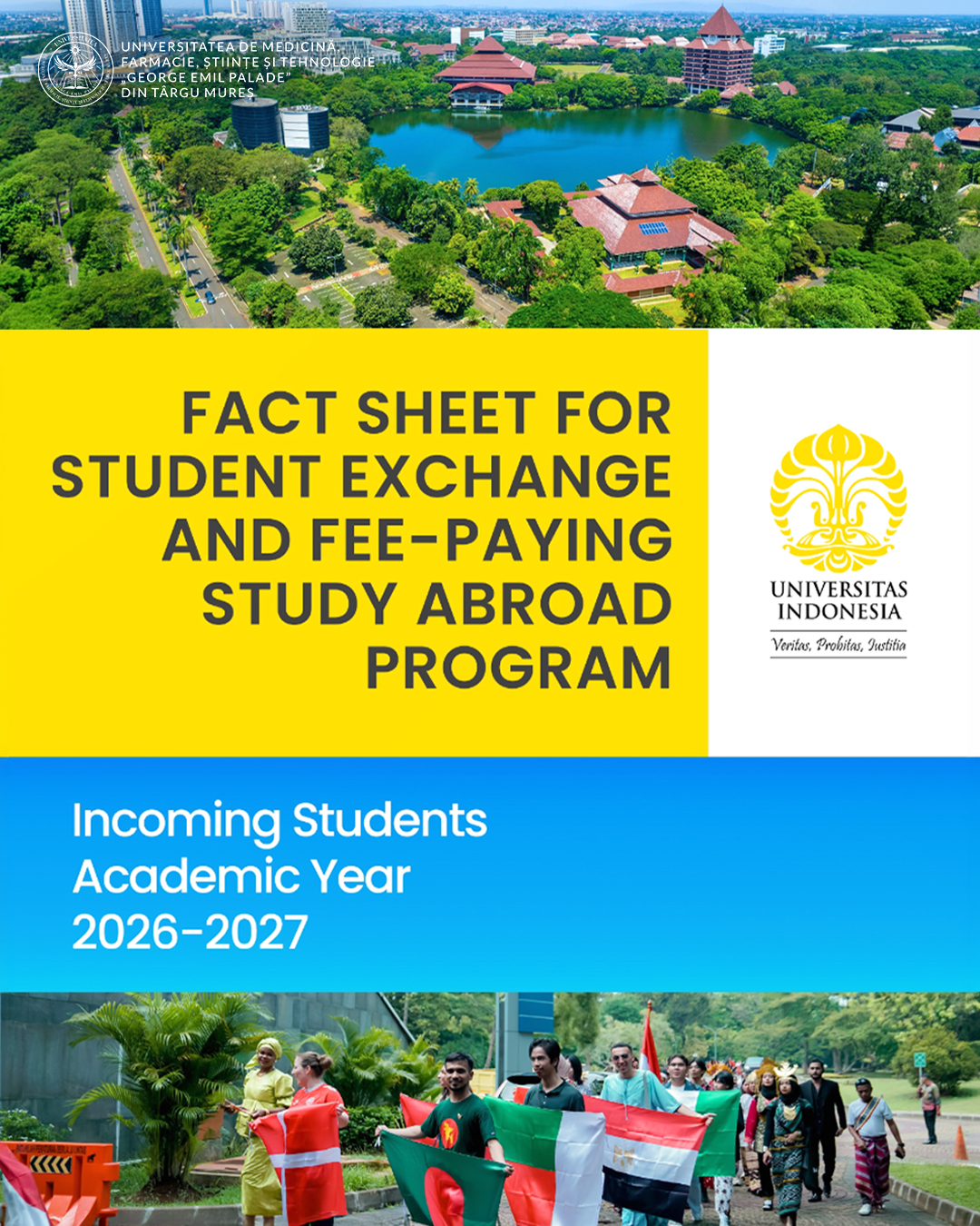 UMFST G.E. Palade Târgu Mureș deschide aplicațiile pentru mobilități la Universitatea din Indonezia în anul universitar 2026–2027