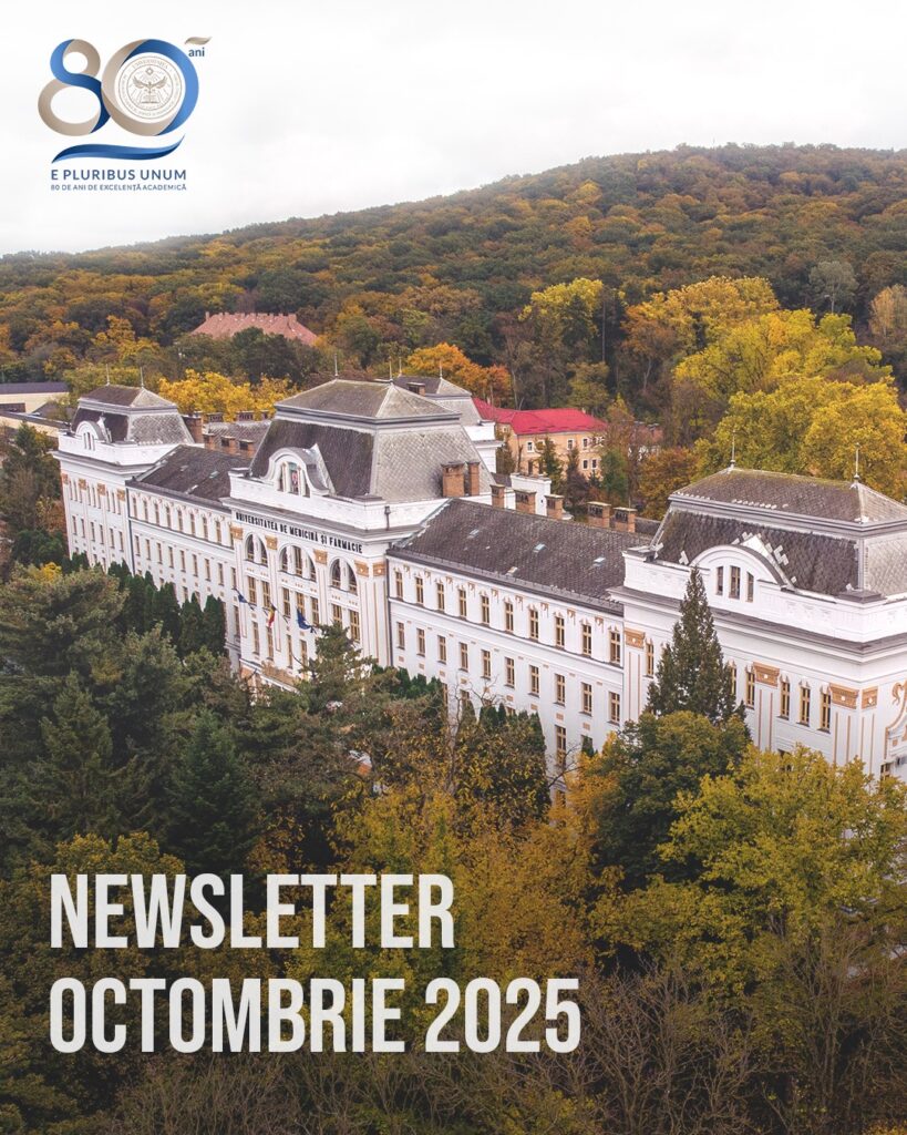 UMFST. Anunțăm apariția noului newsletter, unde se regăsesc informații despre proiectele, realizările academice și evenimentele organizate la UMFST G.E. Palade Târgu Mureș pe parcursul lunii octombrie.